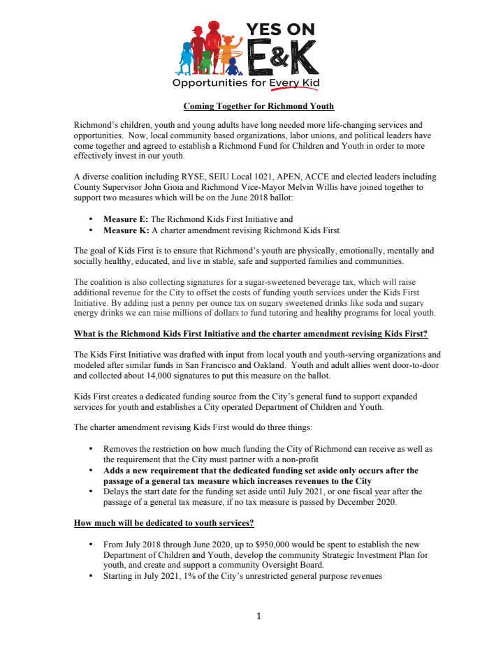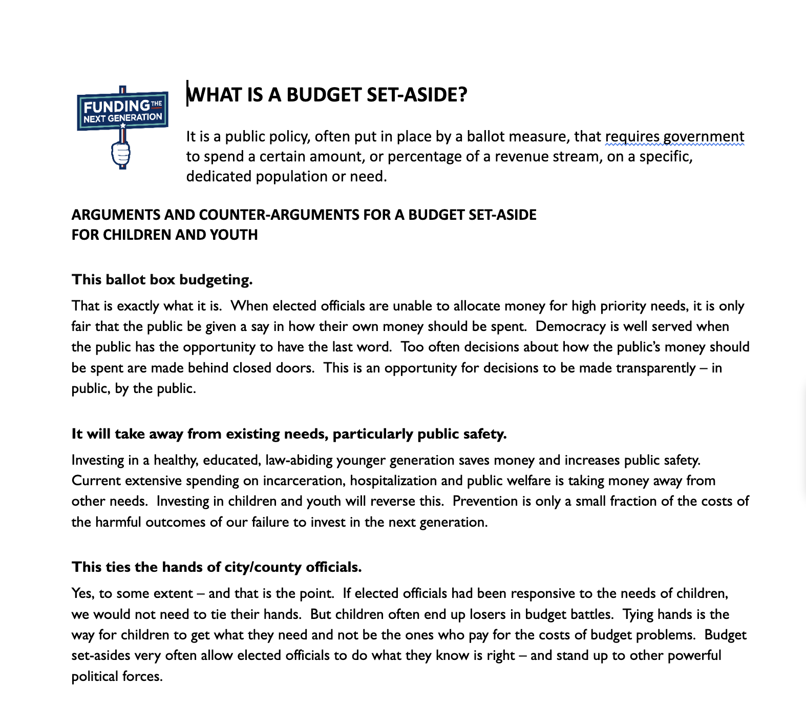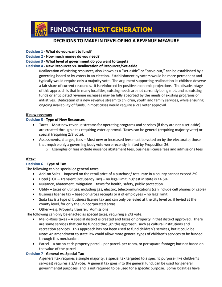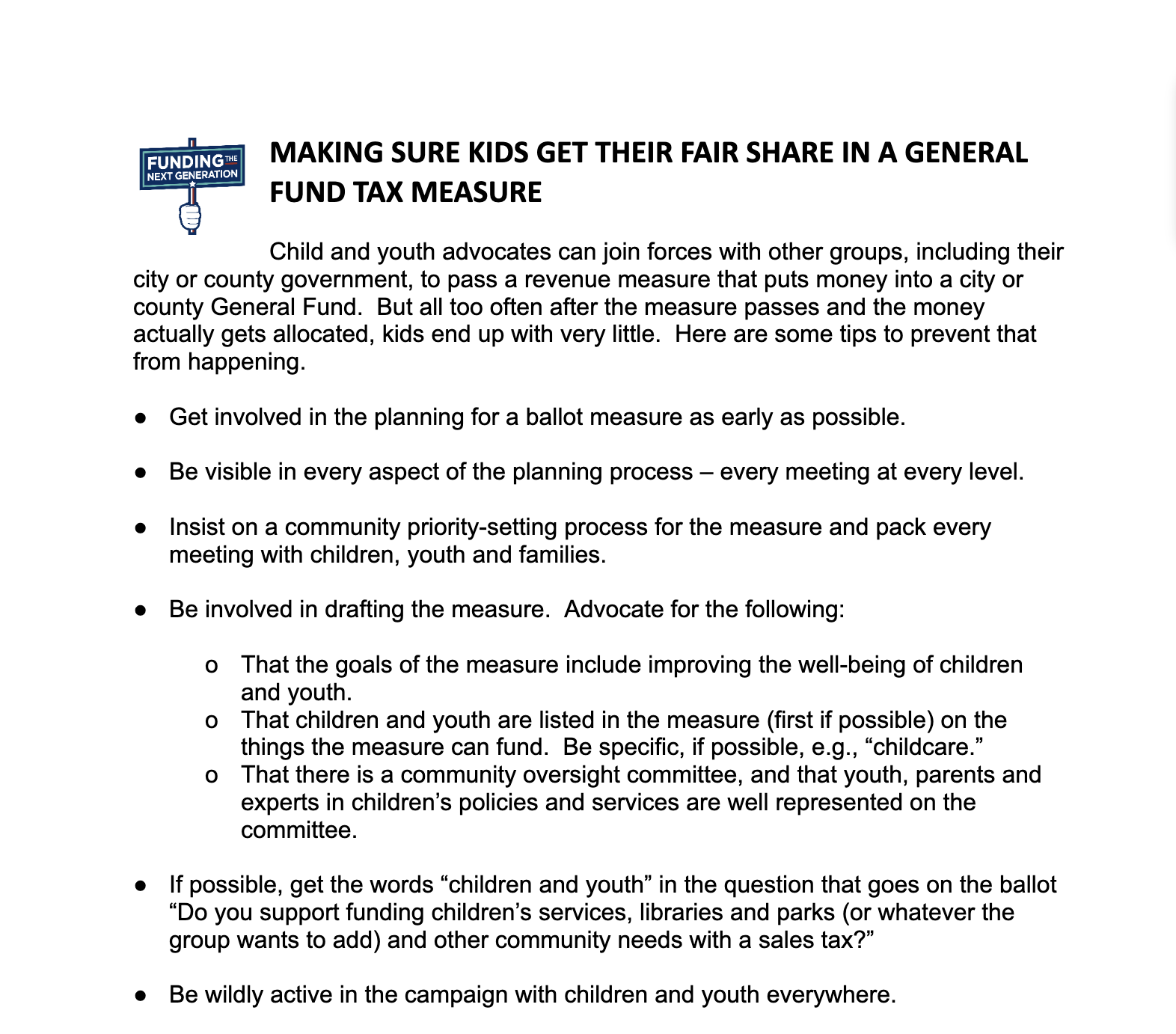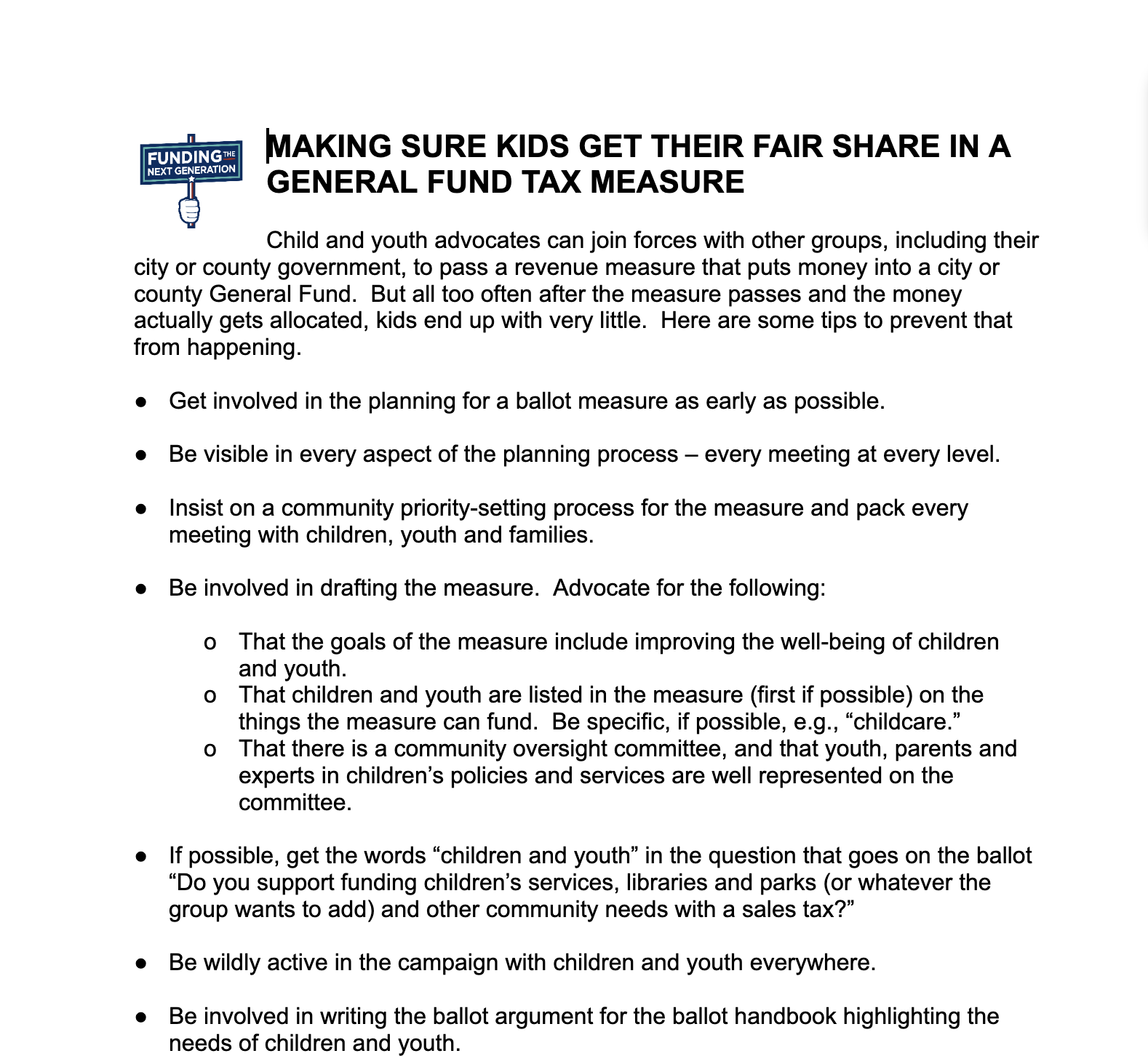 MAKING SURE KIDS GET THEIR FAIR SHARE IN A GENERAL FUND TAX MEASURE