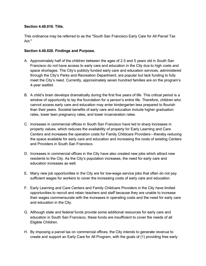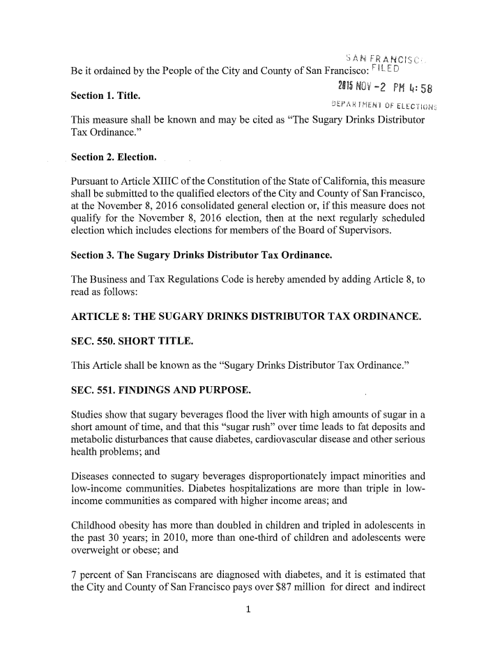 San Francisco Tax on Sugar-Sweetened Beverages Legal Text